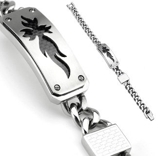 316L Stainless Steel Chain Bracelet Rectangle with Gothic Design Length: 8.66" Width: 15mm Thickness: 5mm